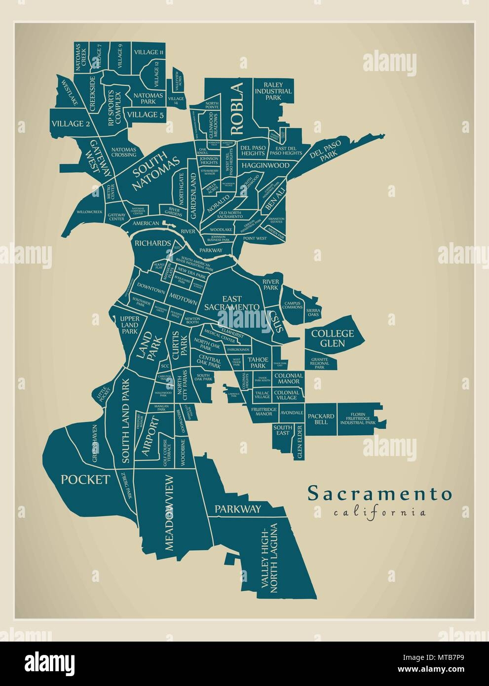 Modern City Map Sacramento California City Of The USA With Neighborhoods And Titles Stock Vector Image Art Alamy