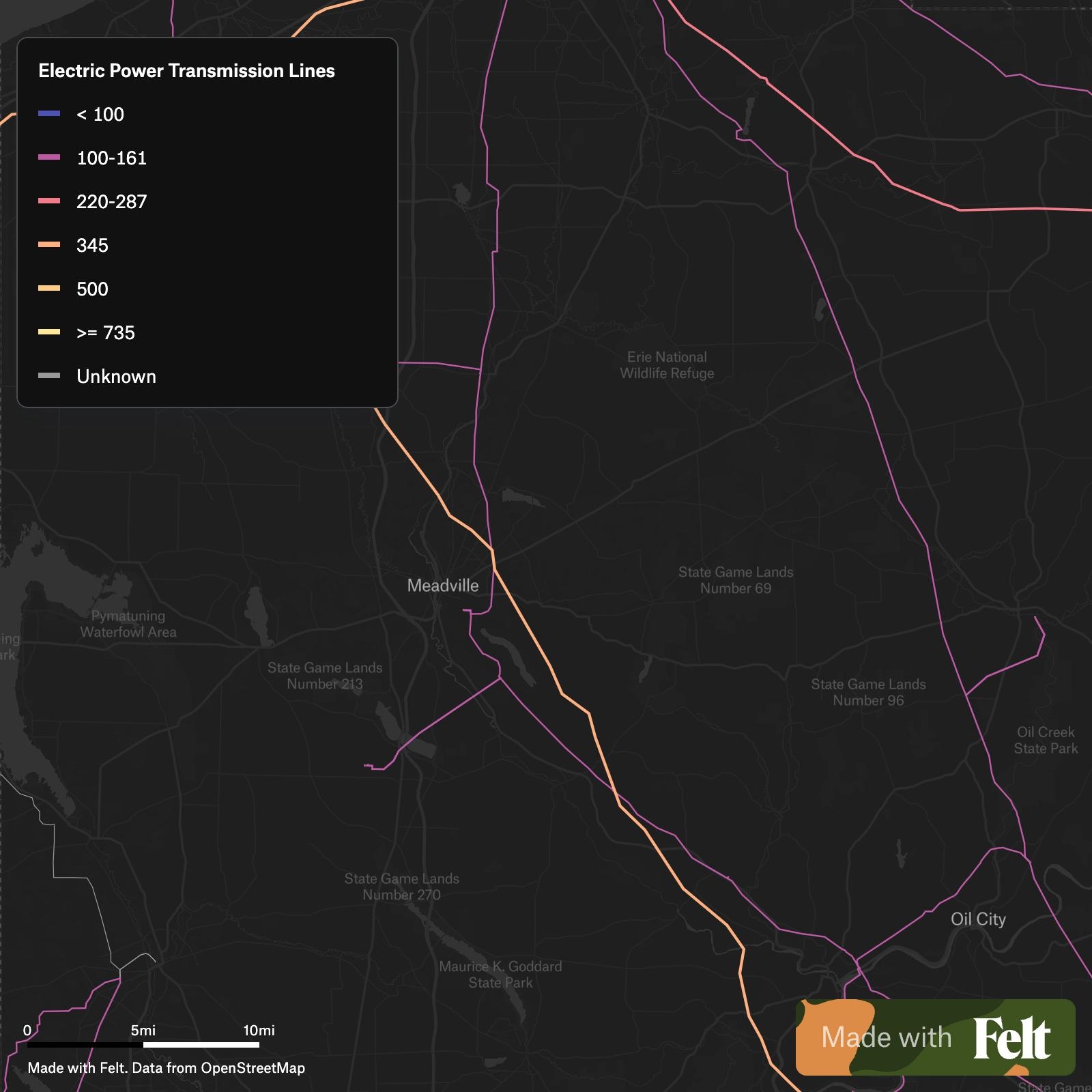 US Electric Power Transmission Lines In Crawford County Pennsylvania