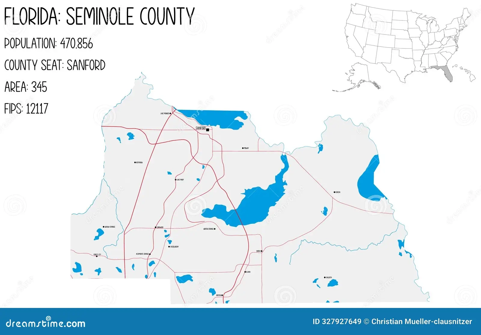 Map Of Seminole County In Florida USA Stock Vector Illustration Of Lakes Citizens 327927649