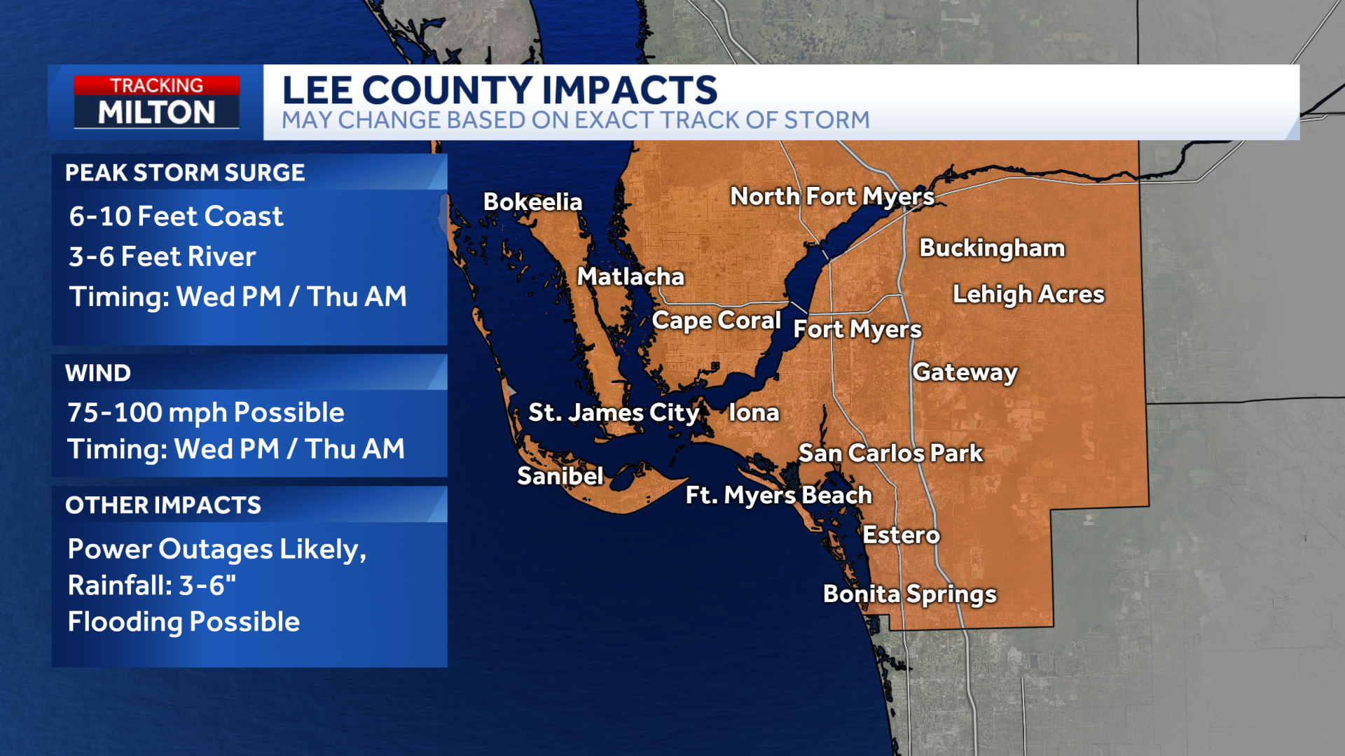 Hurricane Milton Storm Surge SW Florida County by county Breakdown