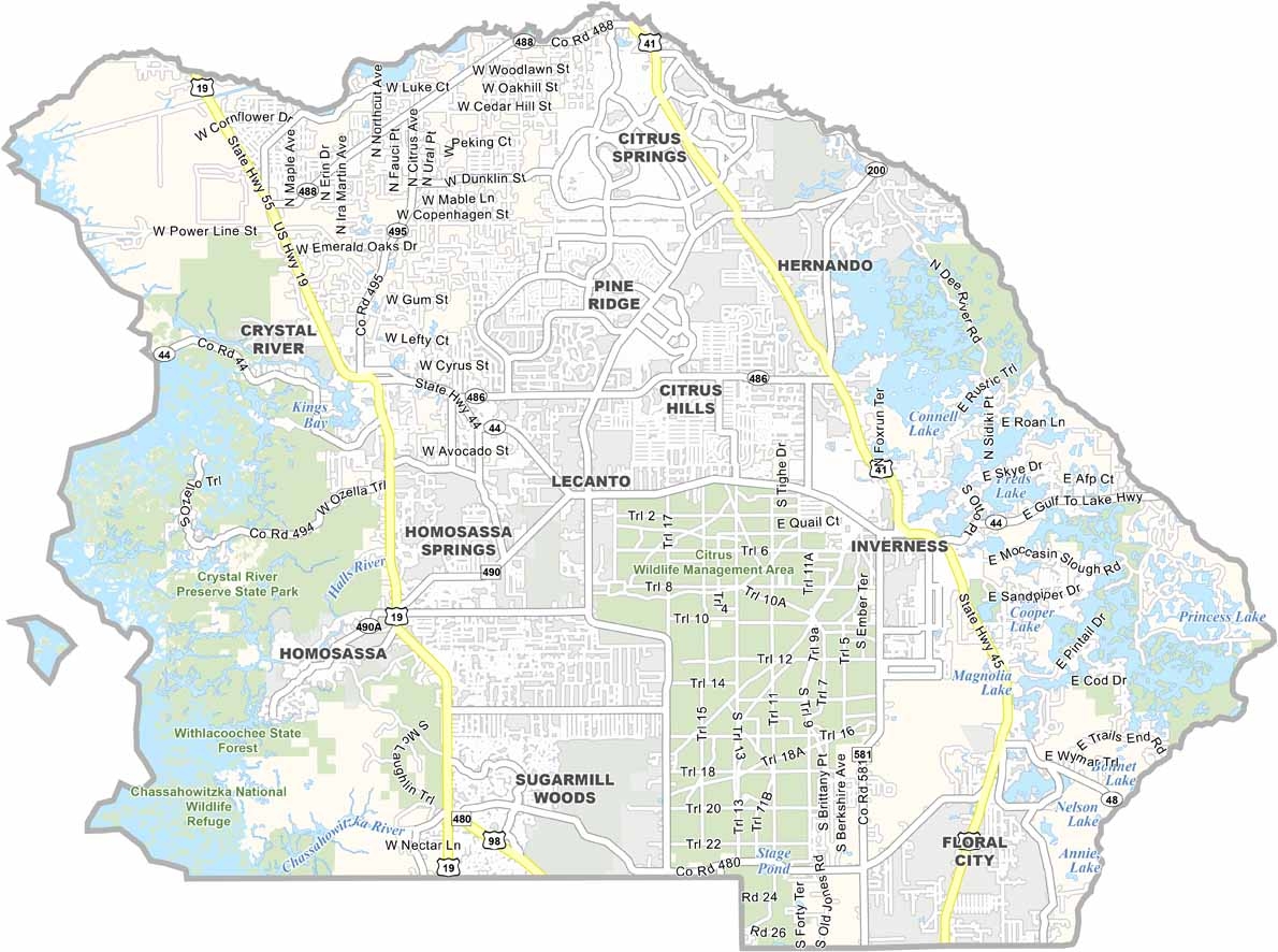 Map of Citrus County Florida