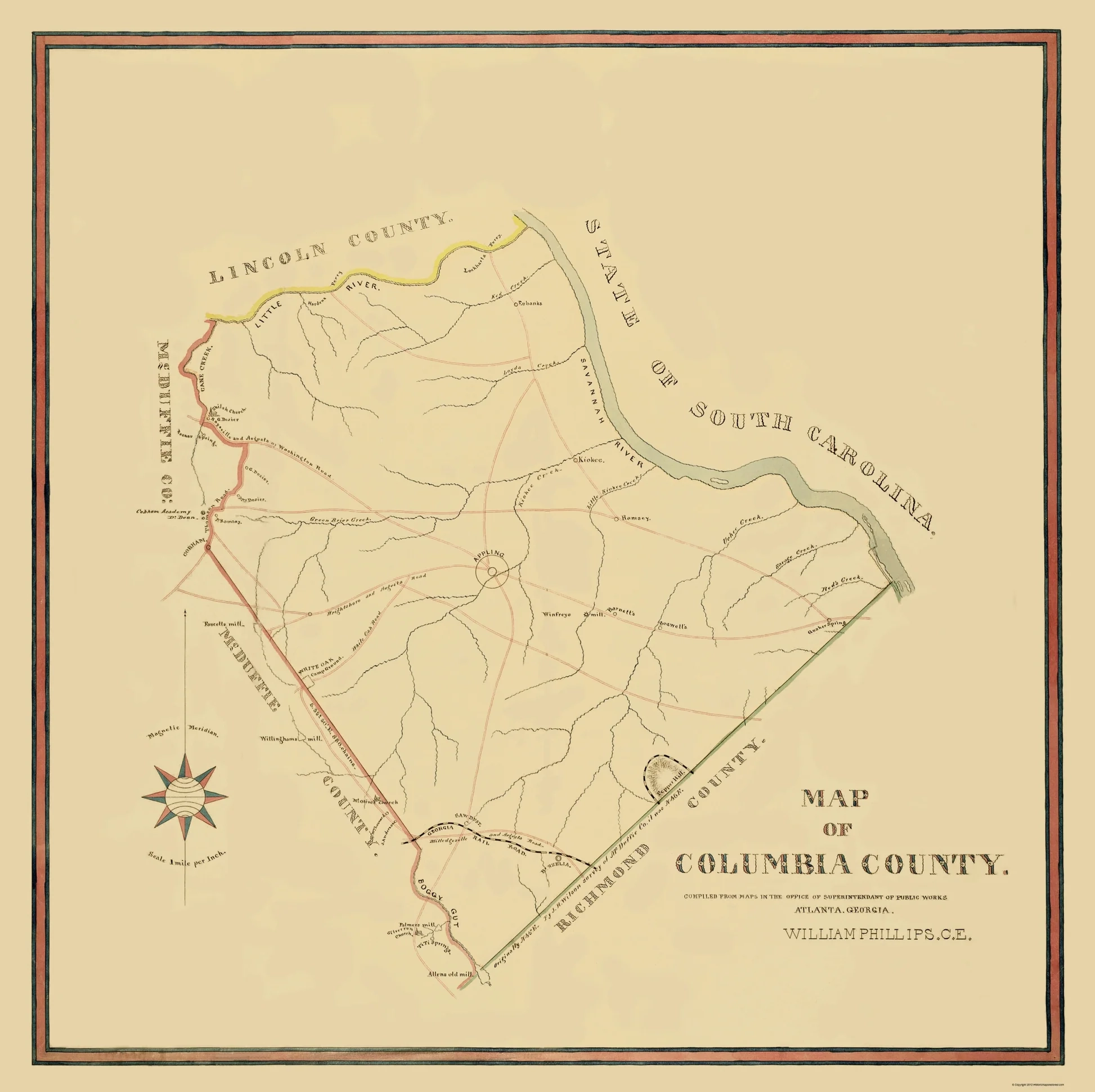 1910 Map Of Columbia County Georgia Etsy Finland