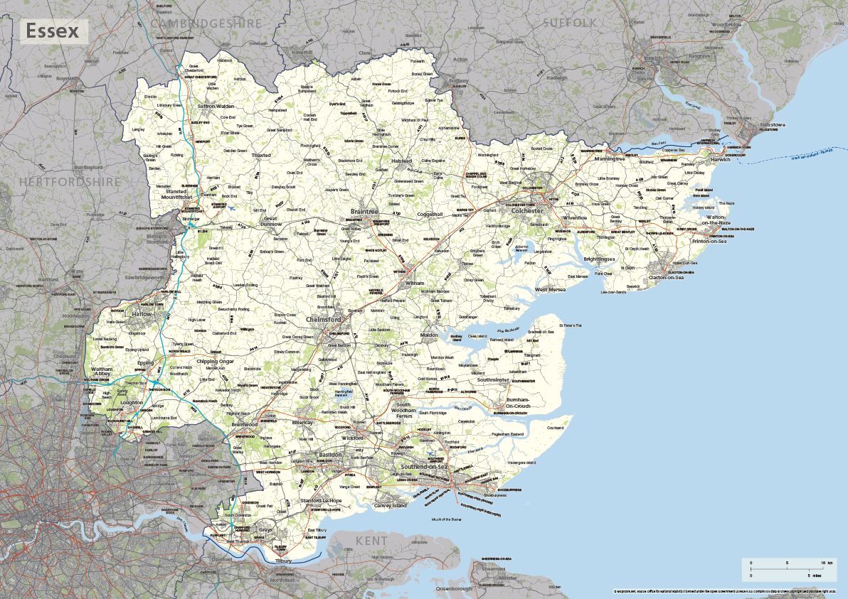 Map Of Essex County In The East Of England Free Download