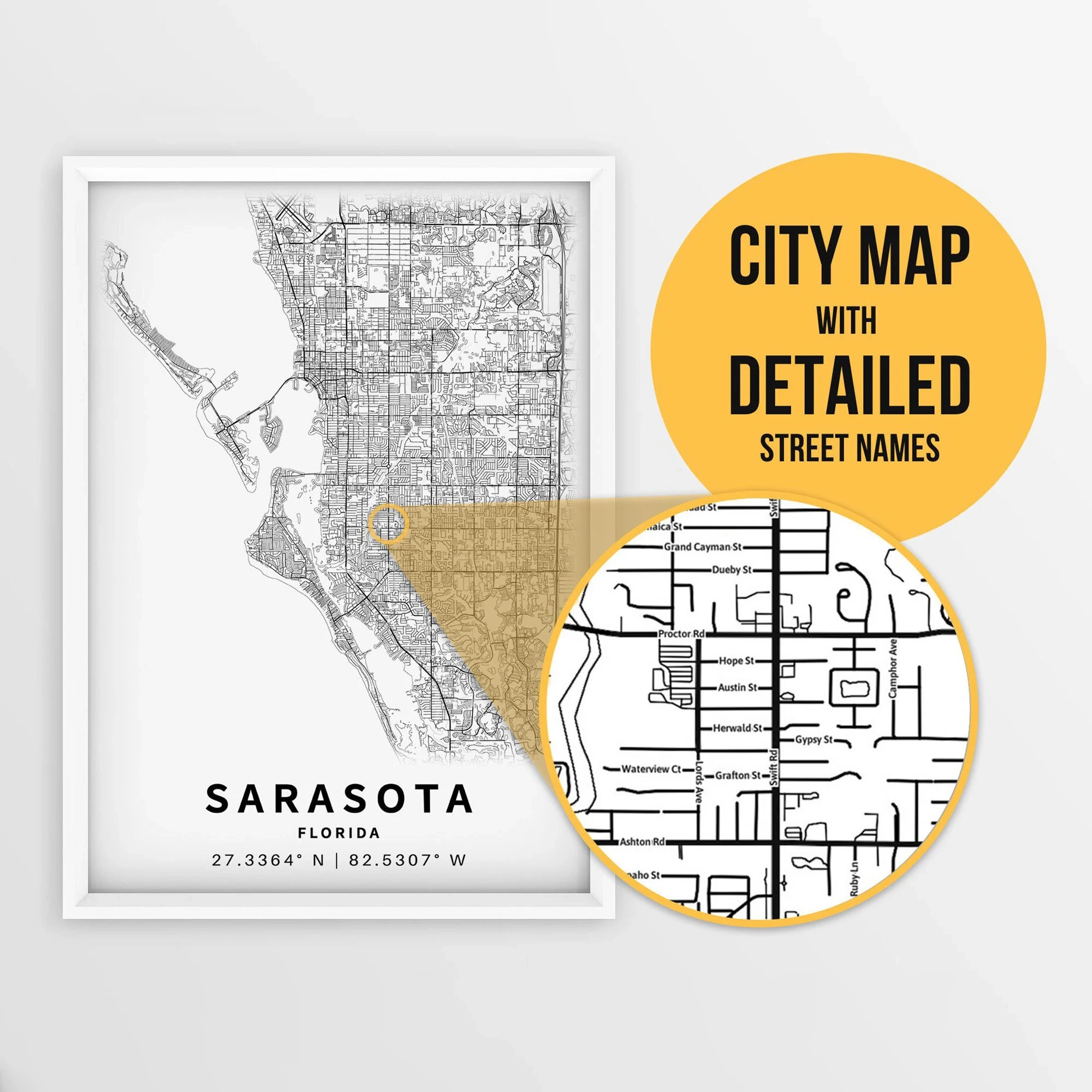 Buy Printable Map Of Sarasota Florida USA With Street Names Instant Download City Map Travel Gift City Poster Road Map Print Online In India Etsy
